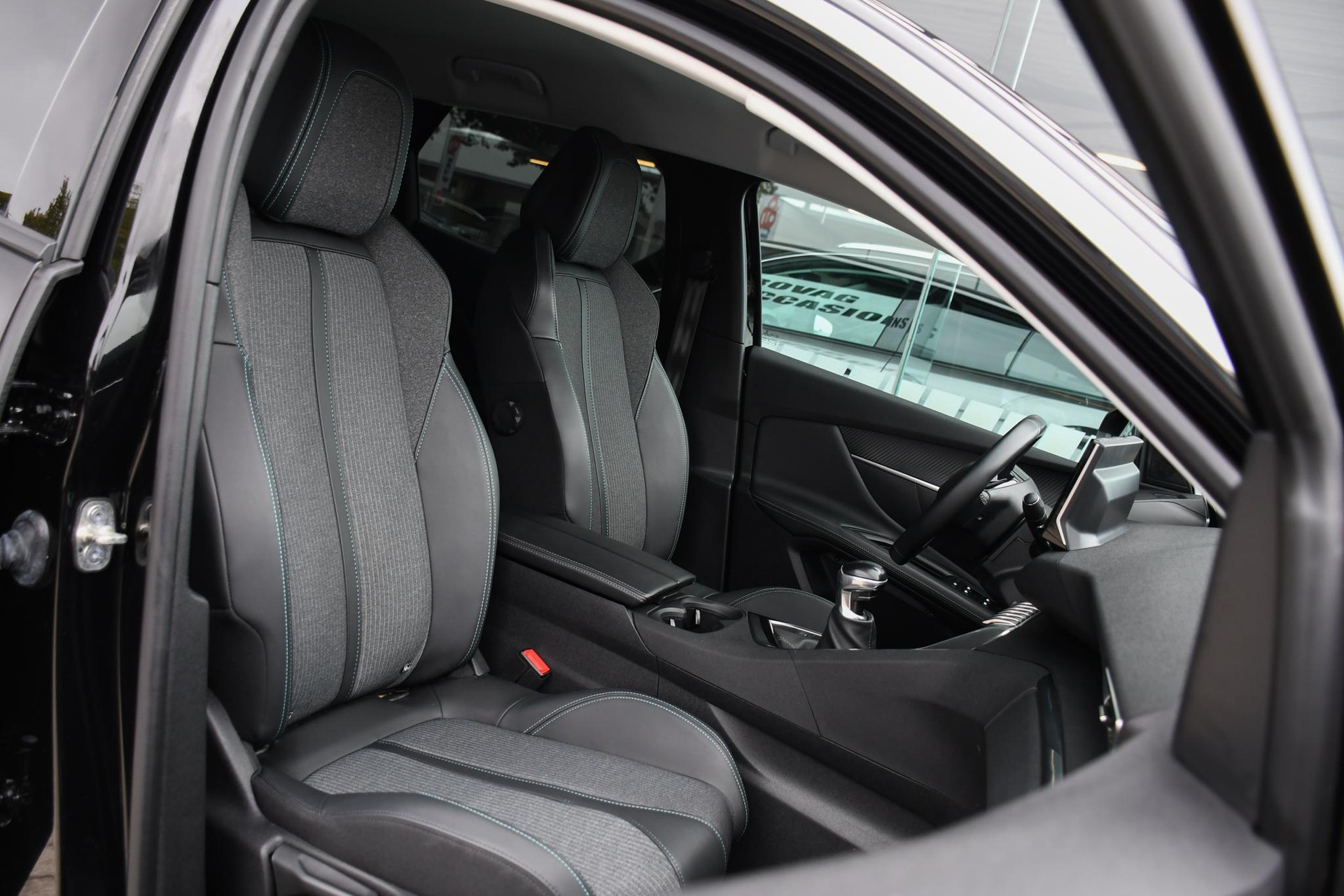 - Stof colyn grijs met mint stiksel