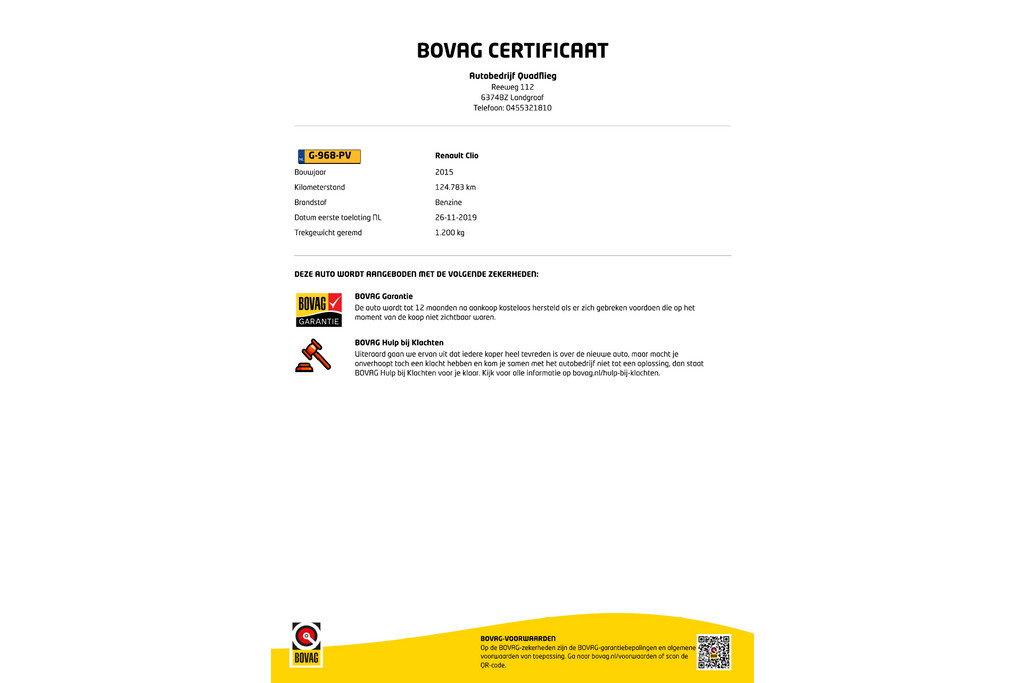 - 12 maanden Bovag garantie?
